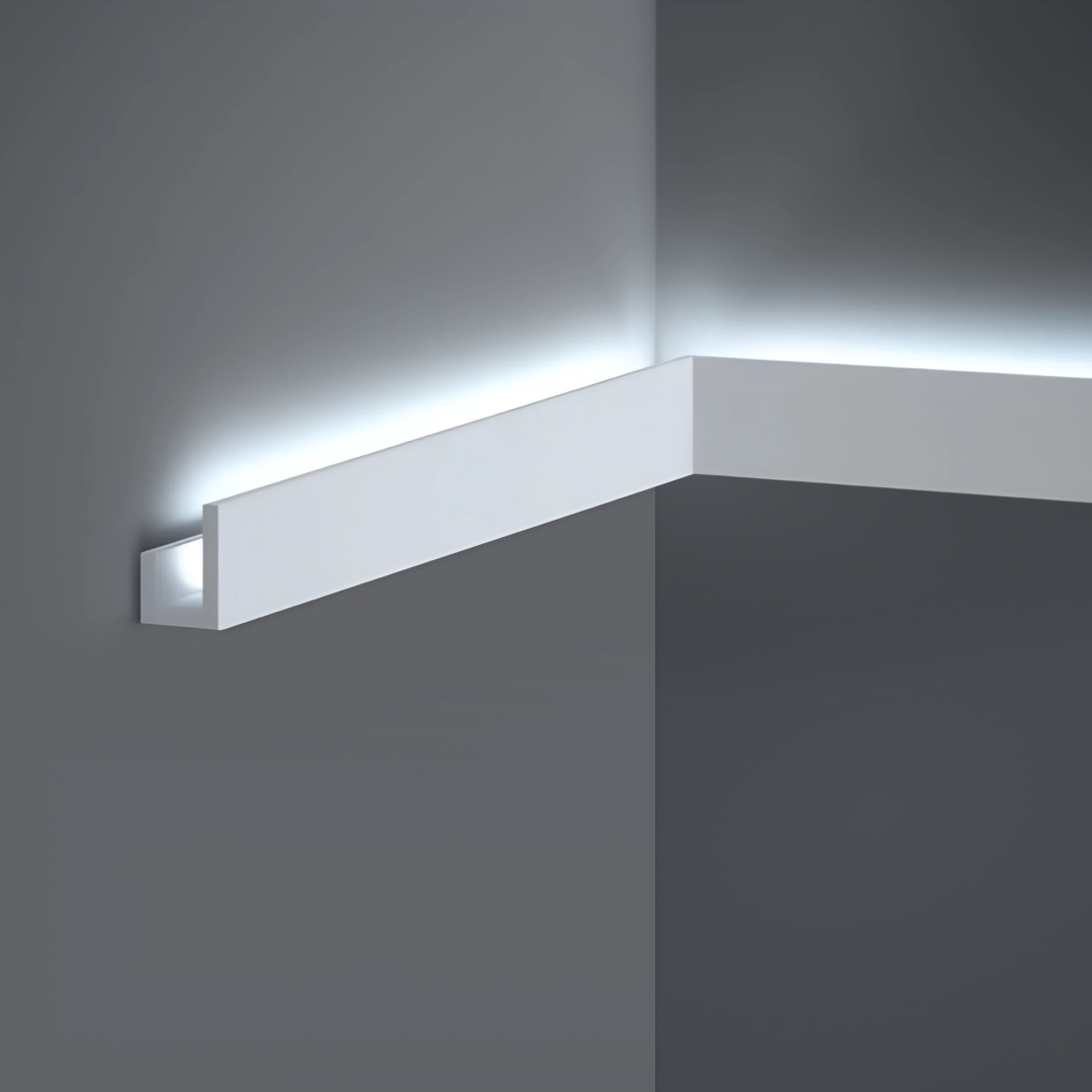 The QL021 cornice for hidden LED lighting made of Polyforce material is a modern interior solution. Thanks to the properties of the material, the cornice is lightweight, exceptionally moisture-resistant, and UV-resistant, ensuring durability and ease of installation.