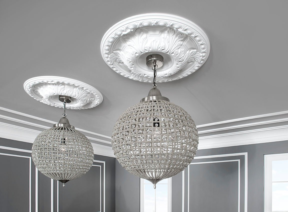 Poliuretāna griestu rozete R109. Griestu dekors klasiskā stilā ar elegantu reljefu rakstu. Pateicoties materiāla unikālajām īpašībām, tas ir viegls, ar mitrumizturību un UV izturību, kas nodrošina tā ilgmūžību un vieglu uzstādīšanu.