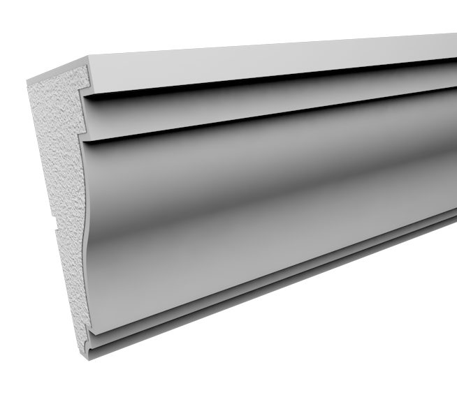 «Фасадный карниз KC106 – это изысканный элемент декора, изготовленный из высококачественного пенополистирола и покрытый прочным акриловым слоем с добавлением мраморной крошки. Этот карниз идеально подходит для оформления дома по периметру в месте соединения крыши и стены, придавая фасаду законченный и изысканный вид.